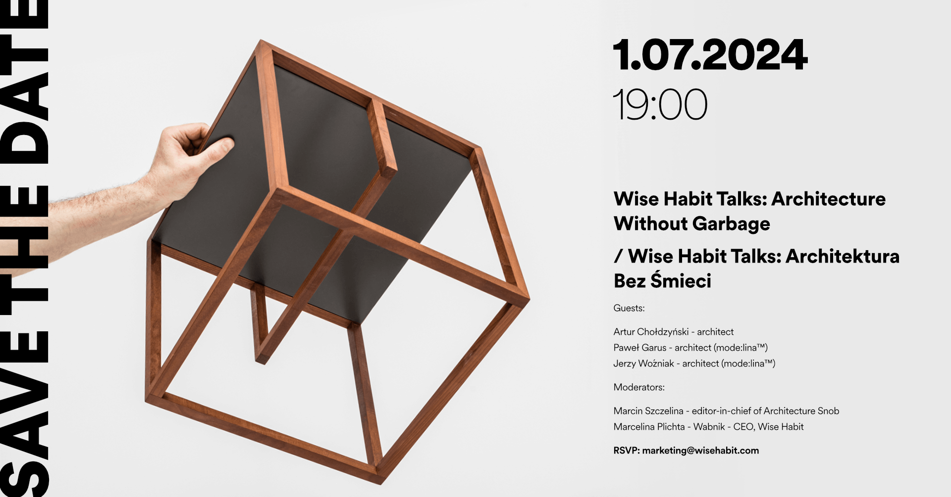 Dyskusję poprowadzą Marcin Szczelina z Architecture Snob oraz Marcelina Plichta-Wabnik z Wise Habit. Będzie to wyjątkowa okazja, aby zgłębić temat architektury proekologicznej i zastanowić się, jak możemy projektować przestrzenie bardziej przyjazne dla człowieka i Planety.