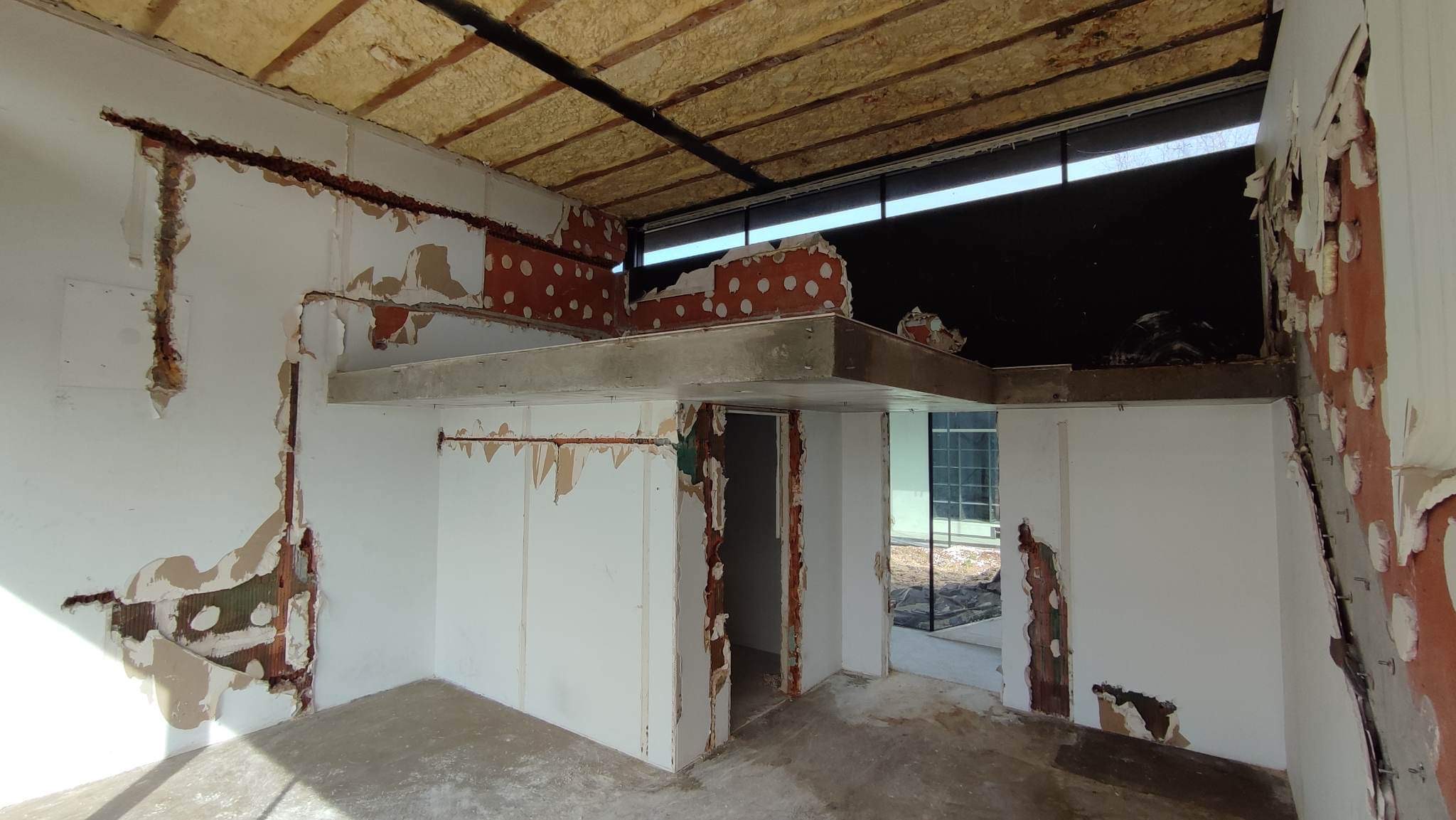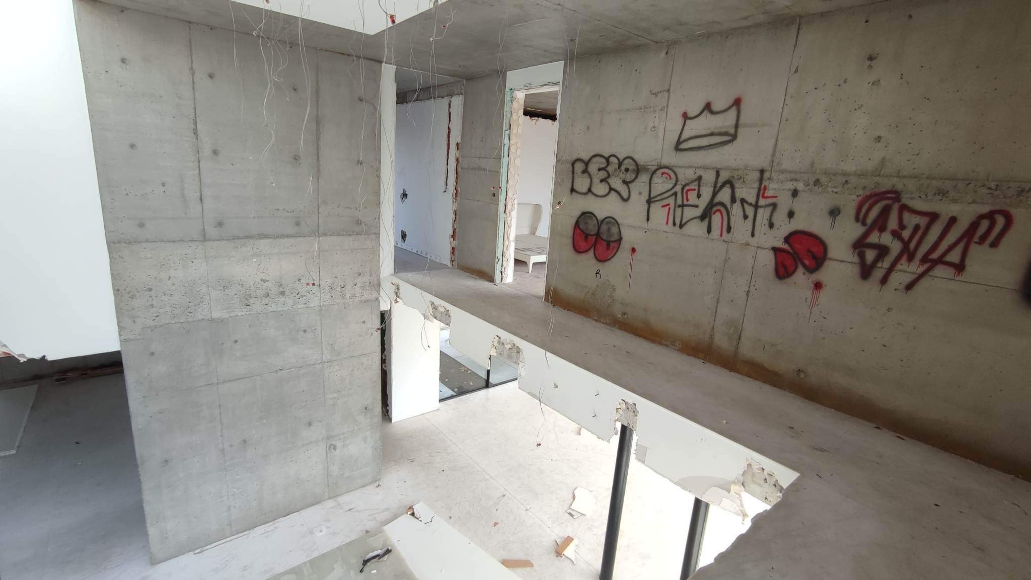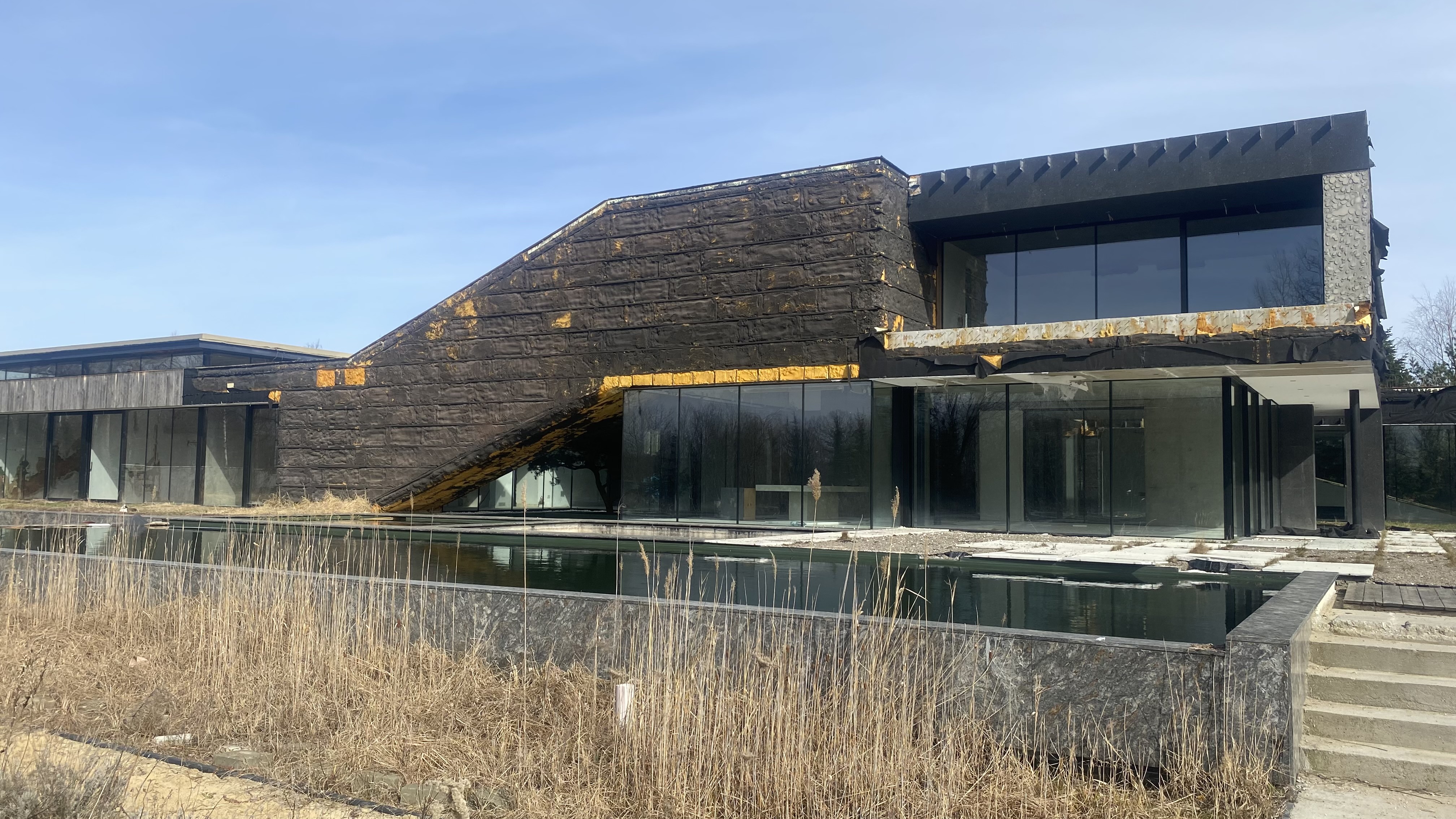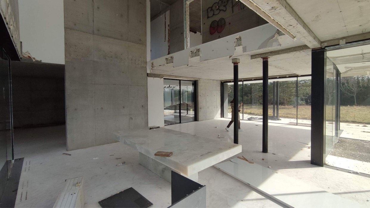 Zdjęcia, które otrzymaliśmy od Juszes, nie pozostawiają wątpliwości – czasy świetności „domu z uniesionym narożnikiem” przeminęły. Nie tylko sam budynek znajduje się w przerażającym stanie, ale również przylegające do niego baseny zewnętrzne, które dziś wydają się stanowić zagrożenie biologiczne. Zniknęły też ślady po elewacji, która była pokryta sosnowym drewnem, nadającym luksusowej rezydencji sznytu domu rekreacyjnego. Uderzają ogołocone do zera wnętrza – puste ściany czy zniszczone instalacje elektryczne.