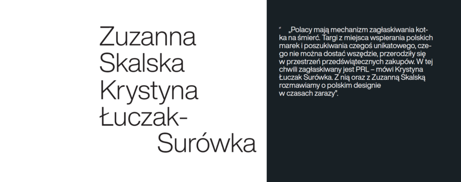 – Polacy mają mechanizm zagłaskiwania kotka na śmierć. Targi z miejsca wspierania polskich marek i poszukiwania czegoś unikatowego, czego nie można dostać wszędzie, przerodziły się w przestrzeń przedświątecznych zakupów. W tej chwili zagłaskiwany jest PRL – mówi Krystyna Łuczak Surówka. Z nią oraz z Zuzanną Skalską rozmawiamy o polskim designie w czasach zarazy.   Rozmowa…
