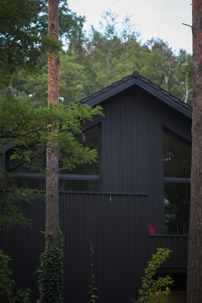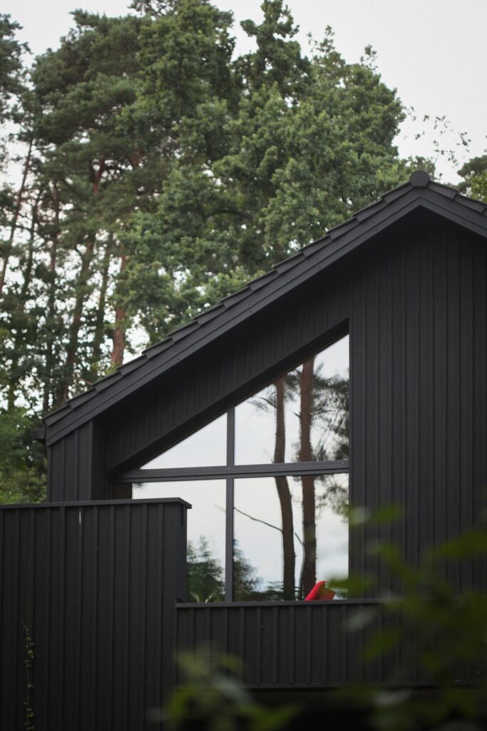 Elewacja: drewno świerkowe opalane techniką shou sugi ban i zabezpieczone kremem woskowym Rubio Monocoat WoodCream