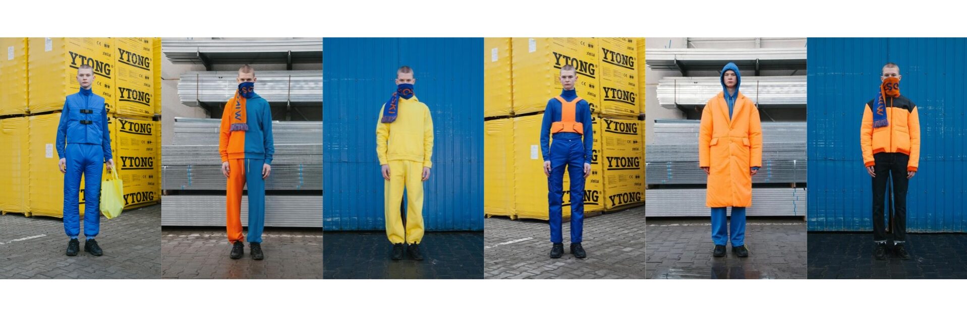 The fifth collection in Sokołowski’s merchandise is named “Budowlanka”. It premiered during this year’s winter haute couture fashion week at the intimate Yellow Cube Galerie in Paris. By this group of designs, he symbolically returns to his hometown of Gliwice and the work of his parents operating in the construction industry. We can discover elements characteristic for construction sites – forms inspired by work suits, abstract combinations of color blocks or colors with strong connotations: concrete grays juxtaposed with shades of blue and complemented by magnetizing orange and luminous yellow. The first photos promoting “Budowlanka” were taken by Marek Chorzępa in a warehouse, where the designer’s mother works on a daily basis.