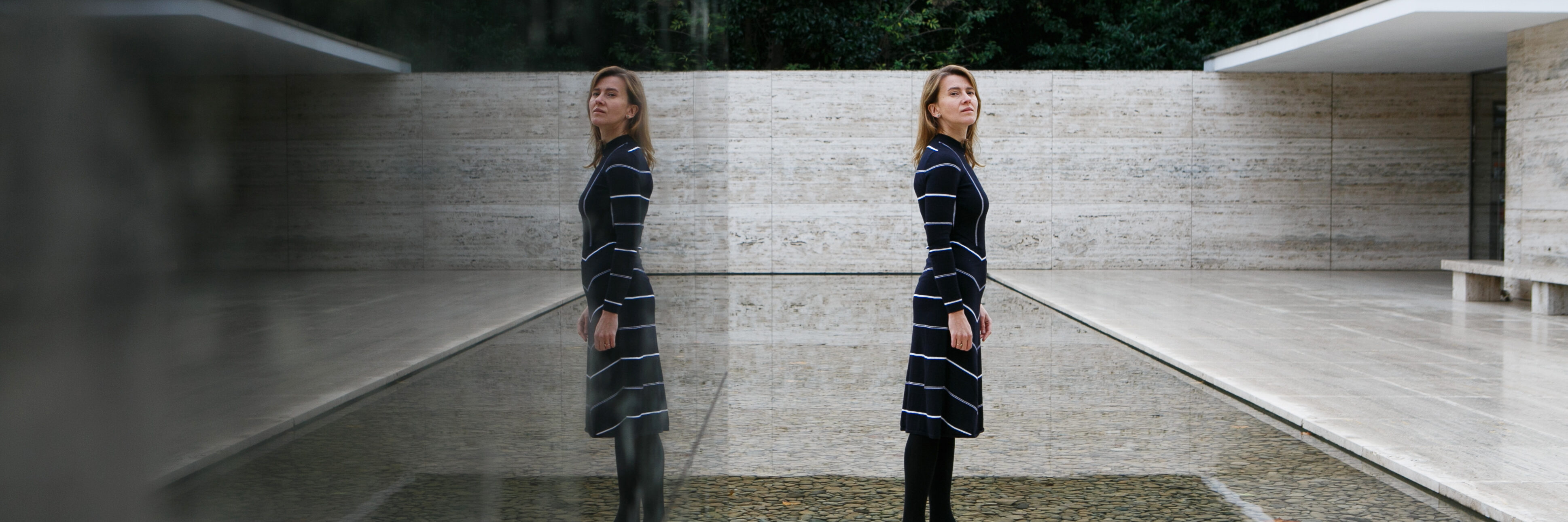 It begins with one word. Choose your own. Katarzyna Krakowiak at the Mies van der Rohe Pavilion, Barcelona.